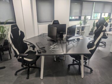 - Espaces modernes et équipés : Nos bureaux sont dotés de mobilier ergonomique, écrans panoramiques de 28″, claviers, souris, et une connexion wifi fibrée haut débit.